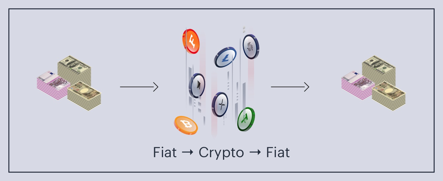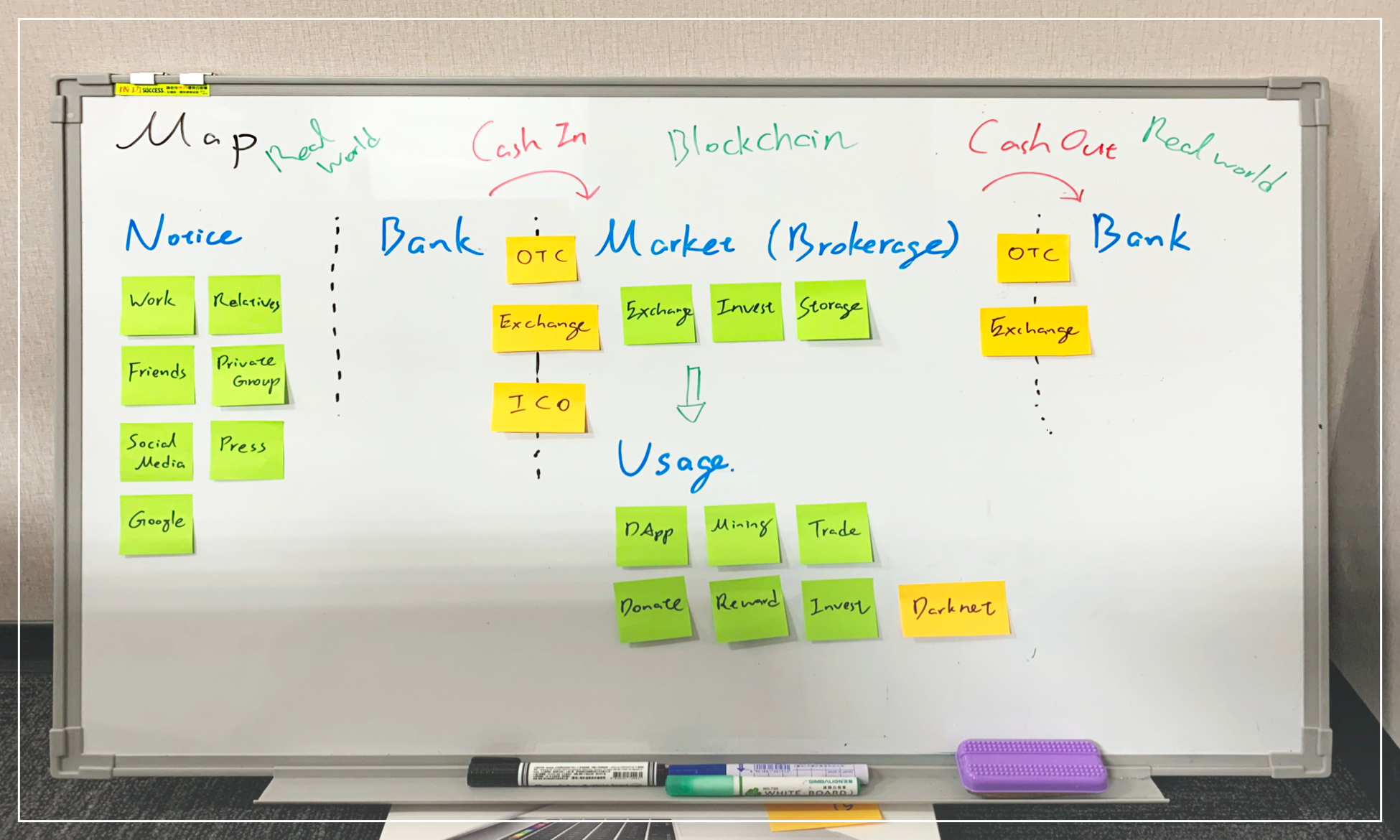 This map is trying to describe the users’ behavior of cycling their fiat-crypto-fiat in the blockchain. Follow this journey map and analyze their behavior.