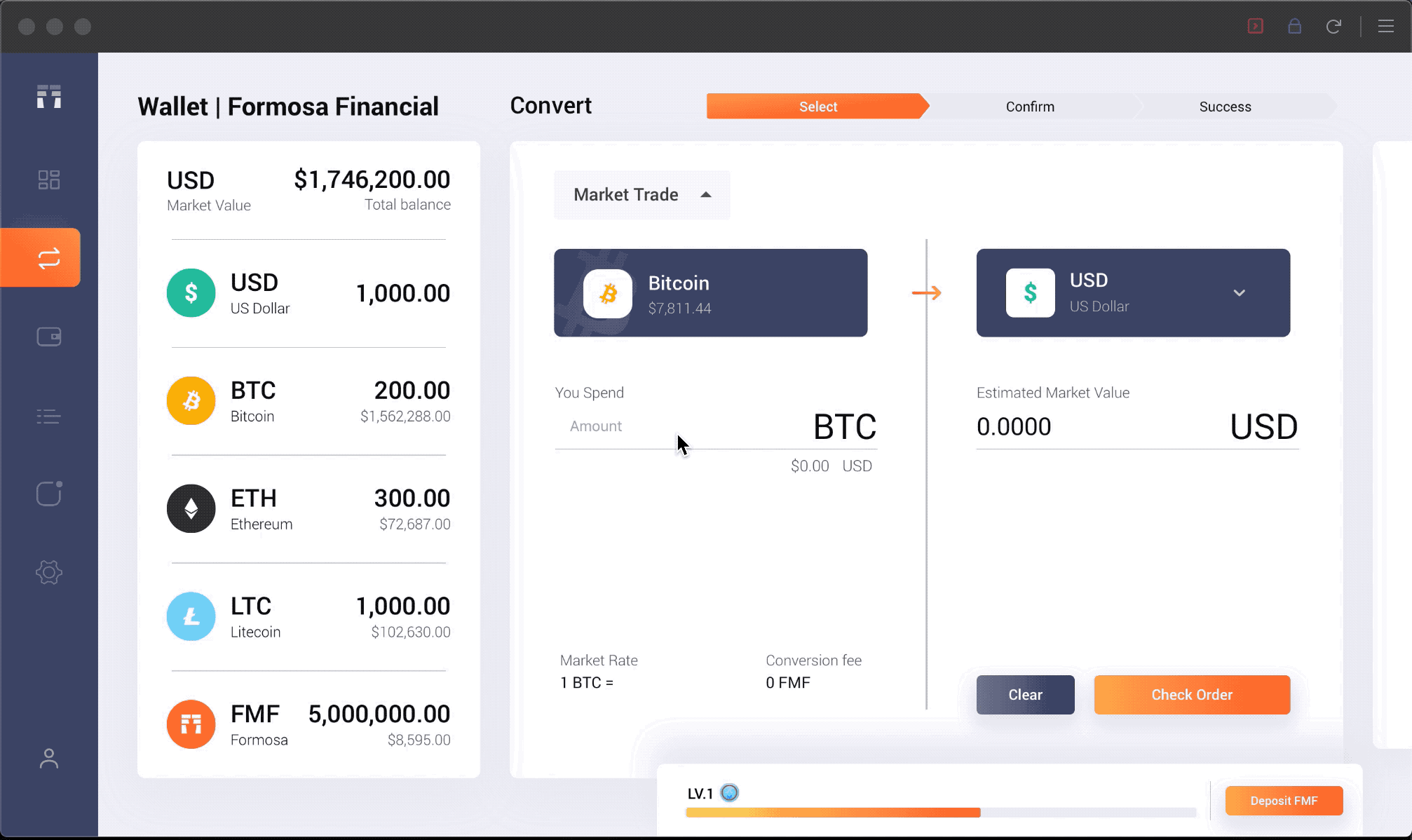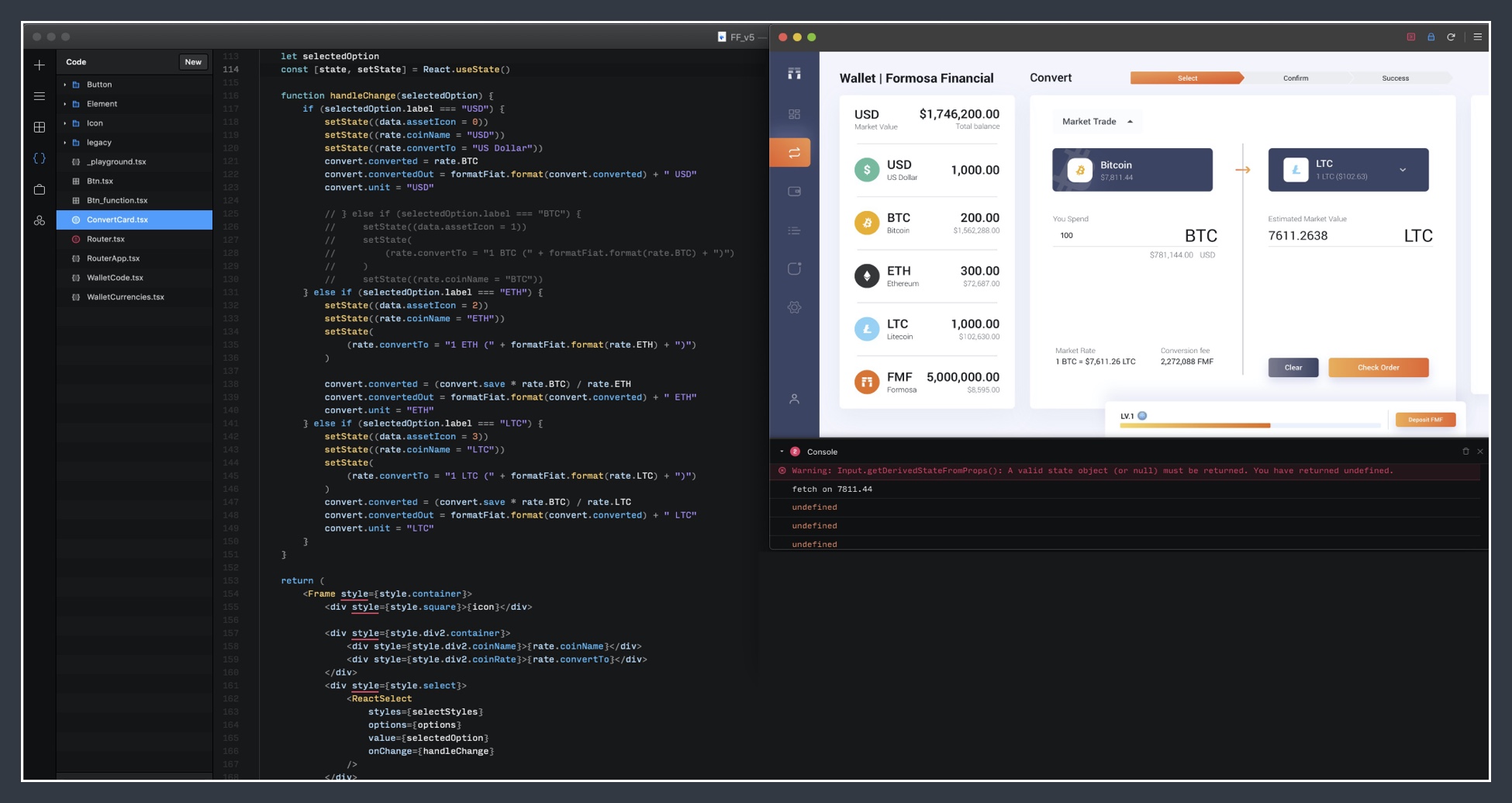 I used Framer X to build the prototype, it allows me to fetch the real data and simulate the convert function like a real exchange app.
